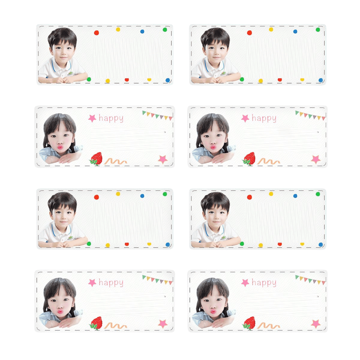 – In một mặt với nội dung tùy chọn: tên bé, lớp, biểu tượng, hình ảnh…